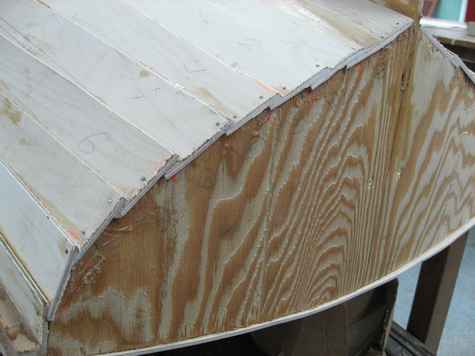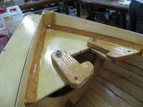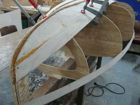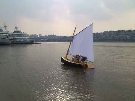 No such luck. Attaching planks was literally a painstaking work. Applying epoxy on them, we attached planks from the bottom to side deck. Despite the fact that we used both epoxy and clamps to keep the backbone still, however, we left not-so-small gaps within her planks, and in result the yacht became a bit bulkier than our original plan: it's the reason why she looked more like a duck when sailing the river, rather than a fairy queen as her name implied.