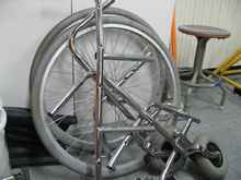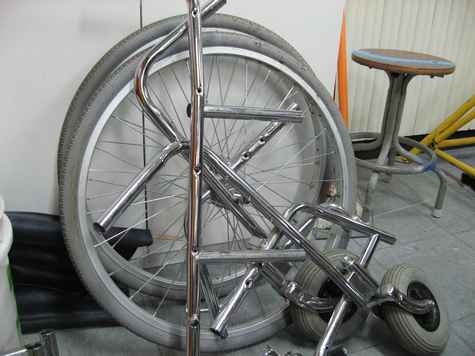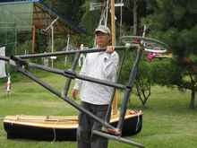 Last time when we carried HD24 to the Han River behind our school, a heavy wooden-made wagon made us sweat a lot. Therefore, a need for a new trailer to carry her occurred to us. We decided to make that trailer as light as possible as we did on our yachts and used wheels form a wheelchair, which had been in our club room, and some carbon pipes for building. By this point you might think our club room must be quite messy, and I have to say that this room is more like a chamber of secrets than any other ordinary club room.