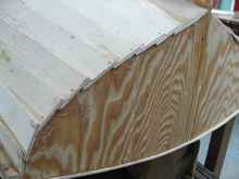After that, we linked transom and the bottom with small nails and considerable amount of epoxy. Having the bottom and the side deck completed, it was obvious that she was still pretty light and easy to turn over whenever necessary despite the amount of epoxy we'd applied.