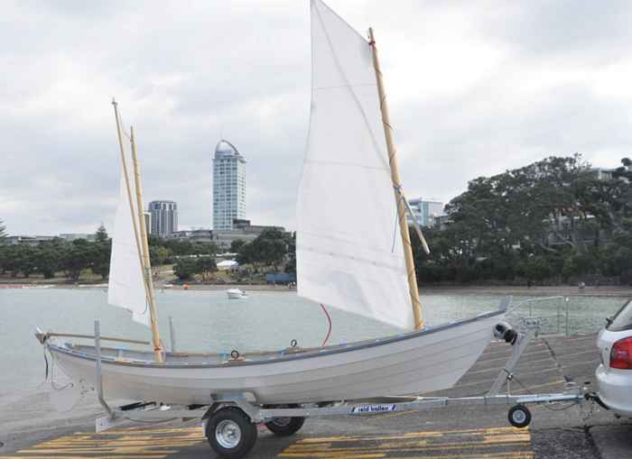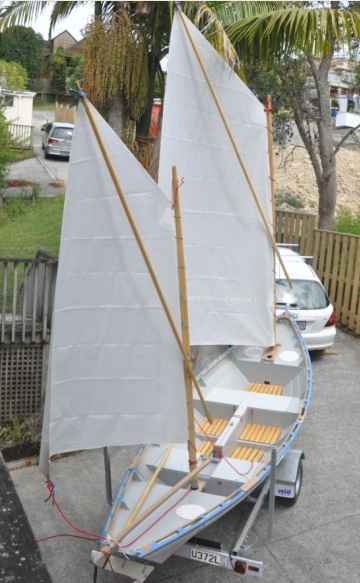 I have spent several months testing the boat, and it all works well. She is fast, dry, tracks very straight and handles rough water well. There is no weather helm or lee helm. She quickly reaches hull speed (5 - 5.5 knots according to GPS) on any point of sail, in most conditions, if the wind is 10 knots or more. She is very fast in light wind. When you sheet the mizzen and release the main she sits to wind.
