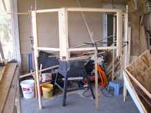 The 2 plywood sheets show where the bunks will be and help for planning the size of the forward cabin. I've got to cut another 18 in. off the height of the bunks base.