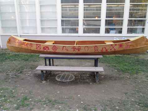I thought you might like to get an update on this. I built so that I could donate it to my daughters 4th grade class. They are studying the west ward migration, Native Americans etc, and will also do an over night stay at Sutters Fort here in Sacramento. As the Wren was made from a Native American skin on frame design, I thought it was appropriate. As part of this, the students in her class study pictographs, and so they painted a story on both sides of the boat. I have no idea what the stories are, but there is a turtle and an eagle in there! At the schools crab feed auction, the canoe sold for $850, which will help pay for field trips etc.