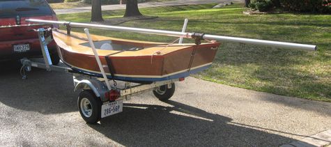 I figured out a way to mount the boom just under the mast since I took the photo. The mast simply slides into or out of the PVC mounts and the mounts are simply thrown into the back of the car until needed for loading to go home. I installed the port lift-handle on the stern after photo was taken.