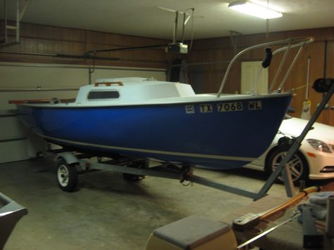 She was built by VanDyne in 63, of fiberglass, might even be boat #1 of about 12 I've been told he built on the east coast, as far as I know, the only one on the west coast. She'll surf on a broad reach at over 8 kts and steer herself on a reach for hours! I bought her for $2200 over twenty years ago, fixed her up and sold her, regretfully, then a friend called me and said he thought he'd found her, bought her back,