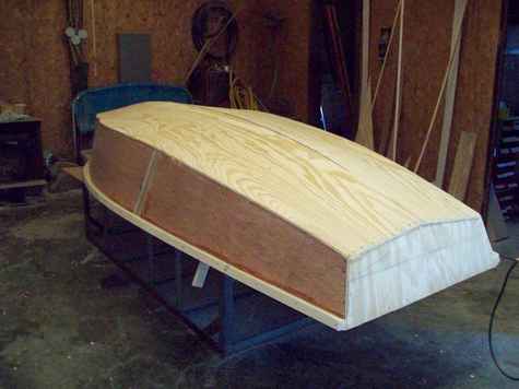 It is coming along nicely. I am going to duct tape it and roll her over in the morning and do the fillets inside. I ordered some tape, glass, and epoxy last night. I always forget to order stuff ahead of time for some reason. I have just enough tape to do one layer on the inside and it will have to set up anyway so the new order will be here in plenty of time I am sure. In the meantime I can do fiddly bits and there are plenty of them. Jackie told me I build a boat faster than Mike can caulk one. I told her that maybe but comparing one of my builds to one of Mike's builds would be like comparing a coffee table built using only a chainsaw to a fine $1000 table from Ethan Allen.