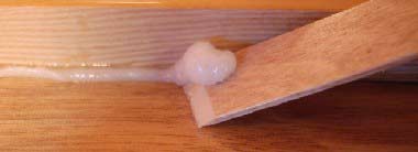 Clean up is a critical part of gluing, unless you like sanding. Colloidal silica filler makes the epoxy easy to work with when wet, but sanding it later is like sanding rocks, so sharpen your chisel sticks (described in the filleting section) before you get started gluing. Time spent cleaning up squeezed out glue beats a lot of time spent sanding.