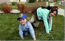 Grandkid update, Charlie who's two today and Laylah. This was taken on Halloween and now the grass is covered with snow; Utah.