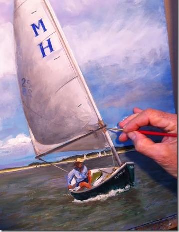 Here he is a few years ago, Howard and I were watching from the light house bar in St Michaels and just knew he was going to jibe in this gust, capsize and go swimming. We were disappointed that he managed to keep her upright, dam.