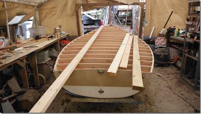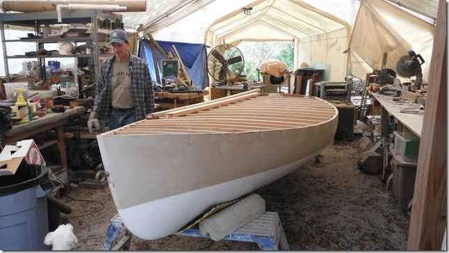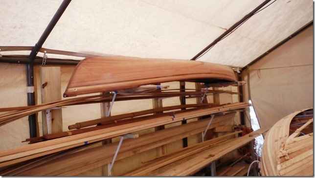 Mereck is building a Wee Lassie out in Sandy's shed. I love it when new guys hit the part where the twist comes in and the strips start to pop.