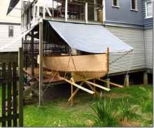 Our friend Aussie John is starting another project. The last time he made a cool little sailboat; this time he's going for a motor boat and who can blame him, motors always run but the wind does what it wants. He says this is a twenty footer, we'll keep up with the build. I love it how boat building equalizes all men. It doesn't matter if you're a world famous anything else, when it comes to building a boat you don't know stuff and it don't take long to realize it.