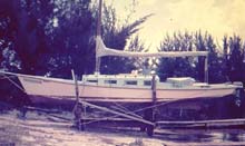 This is the story of the building of the skipjack "Messenger" as shown in Chapelle's "American Small Sailing Craft". My brother Charlie and I built it in 1974 because we wanted a large very shallow draft boat to use in Tampa Bay and along the Florida gulf coast. The only real choices for a large boat with a draft of less than two feet were a flat bottom sharpie or a shallow V bottom skipjack. Sharpies tend to be long and narrow and will pound you to death in the short sharp chop of our shallow water whereas the skipjack is wider and a little more forgiving in the chop. We used the basic drawings and table of offsets from the book to make the hull but then improvised the rest of the boat.
