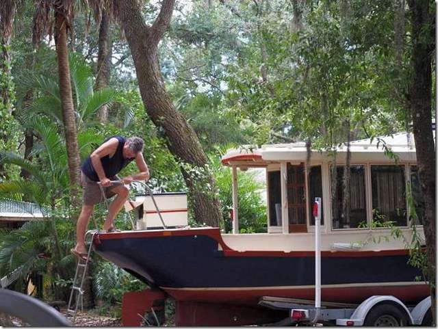 I'm climbing down for the thousandth time from making repairs on my back hatches that some dumb ass did a crappy job sealing the edges. How is it that water can find it's way into a hole that you couldn't squeeze an atom through and then go back and invite all it's friends to come in and rot it out from the inside. I almost forgot, I think I've finally gotten enough cooling in Helen Marie to beat the Florida summer heat. The third and largest Air Conditioner to go in, 8000 btu seems to do the trick and it doesn't require much more power from my generator than the original 5000 did, these things get more efficient every year.