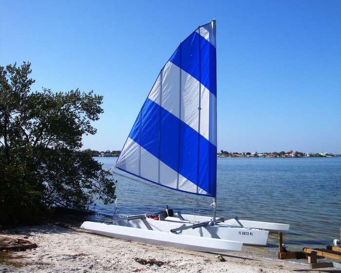 5. They turn and tack better than catamarans, and if done right, just as well as monohulls. This may not seem important until you really, really need to turn quickly in fairly close quarters. I have to confess that my catamarans were really bad at turning in a hurry, especially is the wind was really up - which is yet another reason I love these little tris! 6. They can sail well in extremely shallow water. Mine will sail in just 5 inches, and Laura's in even less! Now, this may not be a big deal where you live. But here on Florida's Sunshine Coast, the bays can get REALLY shallow, especially at low tide. But if I simply pivot up the leeboard(s) and let the rudder kick up, I can take off – even upwind - in as little as 6” of water!