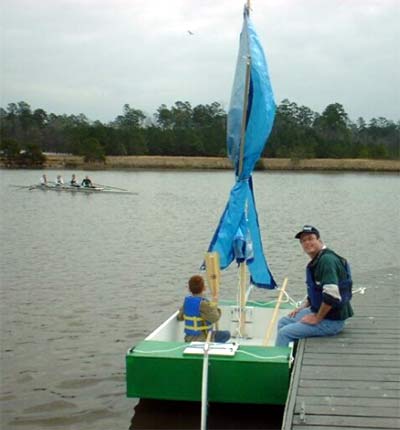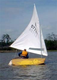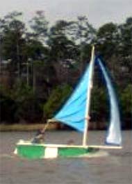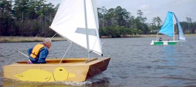 Ken’s boat was built using tack and tape methods and Luan – no chines - and was really light. His boat has a centered dagger board and mounted a stock Sunfish sail. He really flew over the course.