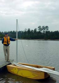 I had a lot of problems with my sail rig but considering I was still bolting on parts the morning of the race, I was proud to have placed a respectable third. Most of all, we all had a great time. Everyone came away with things to change and that is the beauty of the PDS Racer. Shorty decided that his leeboard mount needed to be changed as it caused his boat to flex. Ken mentioned that he thought he might have a bit too much sail and is looking to modify that. I have a lot of bugs to work out with my rig but the hull was fine. All of these fixes can be made and tested before our next race on March 27 at Lake Conroe. Watch out guys, you’re in my sights.