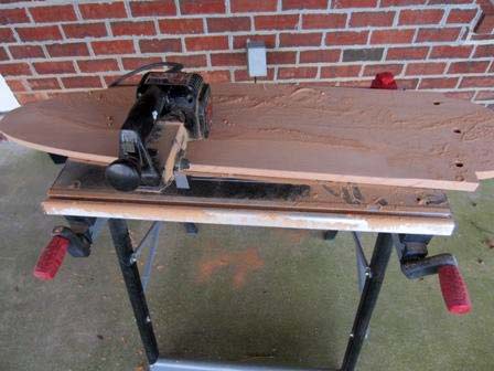 8. Cut out the head, leading and training edges with a jig saw. I cut along the line leaving the line on the board. I then use sandpaper to fine tune. Better to cut away too little than too much. So "leave the line".