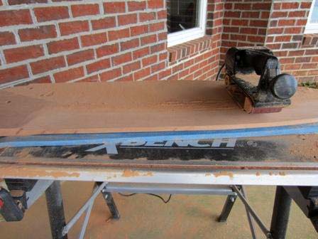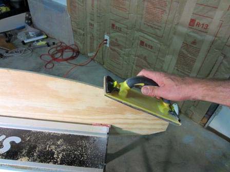 17. Shape the trailing edges with a belt sander. Same as the leading edge, except place the rear of the sander on the 5" line (5" from the trailing edge). And sand to the top ¼" line on the trailing edge. Remember to switch to 120 grit as you approach your goal. 80 grit leaves some fairly deep scars.