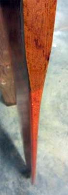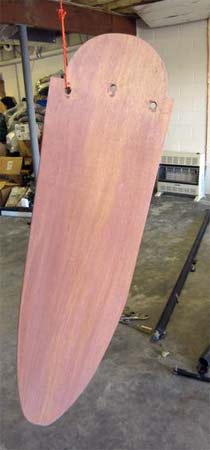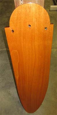 I considered painting the rudder with epoxy to add strength. I tested this by painting a scrap piece of mahogany with epoxy. I was disappointed to find the cured epoxy rough caused by lots of tiny bubbles. This is called "out-gassing". As the epoxy heats to cure, air is released from the wood and caught in the epoxy resulting in a rough surface.
