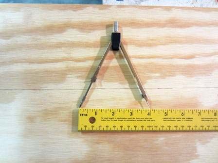 If you don't have a drawing compass a nail, string and a pencil will do the job. Tie the string to the nail and set the nail at the intersection of the lines found in step 4. Measure 4 inches of string and hold the string to the pencil to make the radius line.