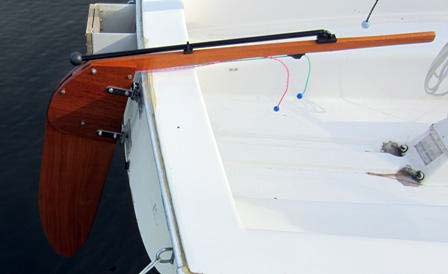 Notice the tiller in the rudderhead. The final ruddercheek dimensions, cheeks.pdf, are so that the tiller is completely covered. I think this looks better and probably gives the tiller more leverage on the cheeks.