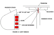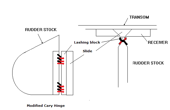 If you were to combine this method with the Cary hinge you have an easy to remove rudder mounting with an easy to replace hinge mechanism.