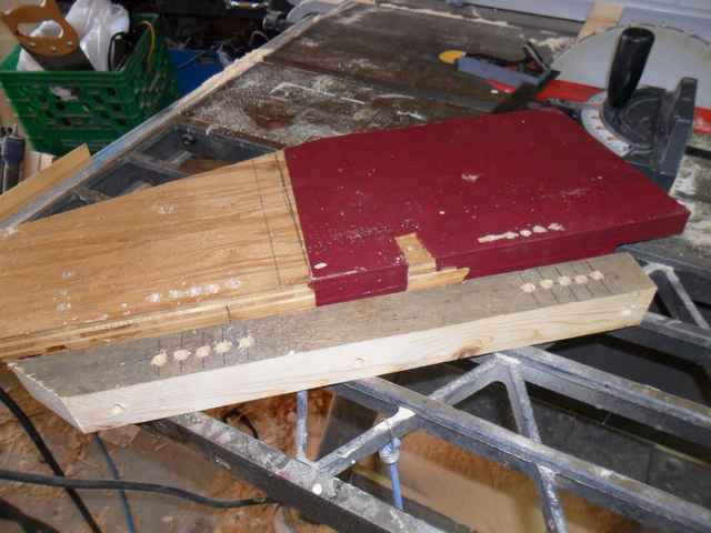 I then chamfered the mating sides on the table saw using a gadget I made up to prevent kick back.
