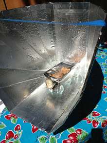 I used a cardboard solar oven to make dinner. In an hour or so I had steaming hot dogs with sauerkraut.
