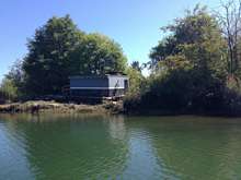 Soon, I was threading my way through a forest of pilings, clearly a part of the abandoned sawmill barely visible in the overgrown shrubs along the shore. These pilings are a real danger, as many are rotted off just below the high tide line. I've hit more than a few as I motor along, which is part of the reason I move so slowly here.