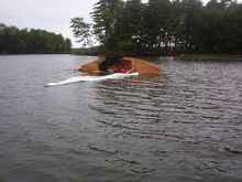 And then the rig is in the trees and the boat is aground and we're back on the northern shore. We've made about a boat length's worth of progress to windward. I jump back into the water, drag the boat around, and re- launch on the port tack.