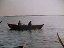 Considering the mouth of the River is a few miles from Rings Island, and I was walking in thick, sandy mud, I began to worry the tide would get too deep for me to continue towing the dory. When I started the water was shin deep, two or three miles later it was about waist deep. I got my sister back into the dory and tied the anchor line around my waist to make sure I didn't fall into an unseen hole or steam bed.