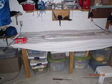 I found using an old bed sheet on my work table made laying out and cutting the glass cloth easier and avoids snags. I'm using 6oz Eglass which is quite thin and requires careful handling.
