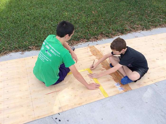 I got my boys involved laying out the patterns on the plywood and with the cutting of the wood. I was surprised how much we could cut with the circular saw. A bandsaw would be great for the next boat.