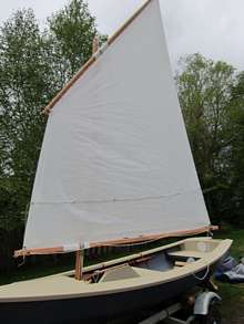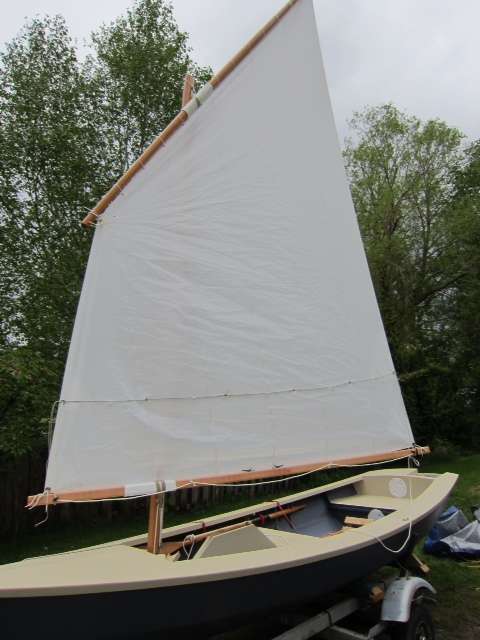 My companion, Diana, and I sewed the sail in late April. We chose the lug sail kit from Sailrite. Our second from them. This sail is 76 sq ft, much larger than the jib we did years ago, but it went together faster and with less confusion.