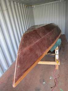 When winter approached, I had most of the construction done. The interior was painted. I moved the boat from the open carport to a rented storage container. Before it got too cold for my little heaters, I finished the outside of the hull, faired it and applied the fibreglass and epoxy. Closed the doors and waited for spring. |
