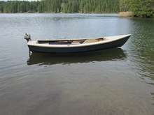 The boat? Ross Lillistone's First Mate. The boat is just over fifteen feet long and just over five feet wide. Designed for rowing and sailing. Its a very close relative of Lillistone's Phoenix III, but stitch and glue instead of lapstrake construction. I bought the plans and fittings at Duckworks.