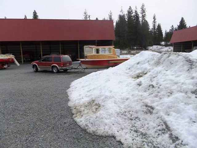 Just before this "I can't believe I'm doin' this!?!" marathon; Shenanigan came home in a snow-burst, and was in the shop for a new steering setup, motor controls, helm seat, paint touch up, and whatnot. And, then right back into storage.