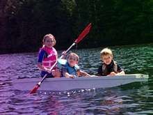 After they didn't catch any for a while Noah paddled Seagull back to the big Island, where they picked up Nicolas and Levi.