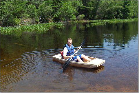 Then the man put some cushions in her, he held a paddle and wore a strange vest. He pushed her out into the water a little and then stepped into her.