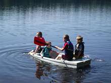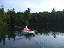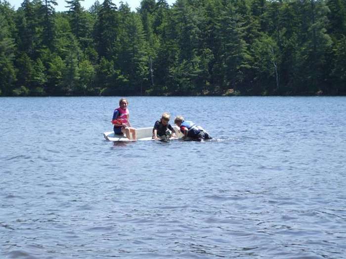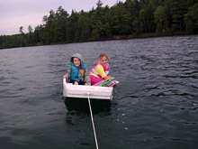 After the sun was all the way up, it got warm out. The children spent many hours paddling Seagull around the Island and playing in the water.