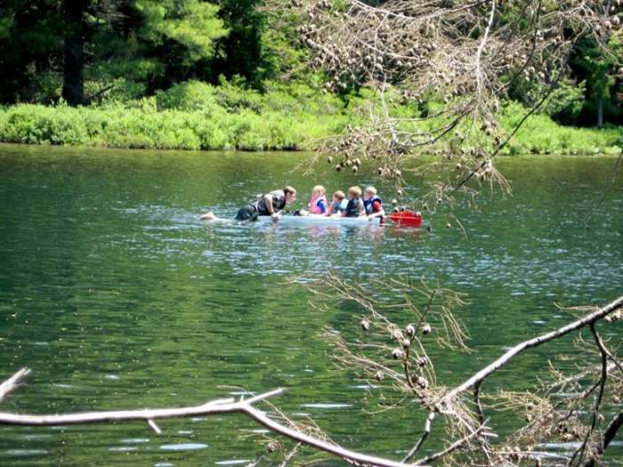 The wave he set up caused Seagull to fill with water! Good thing the kids all had their life jackets on!