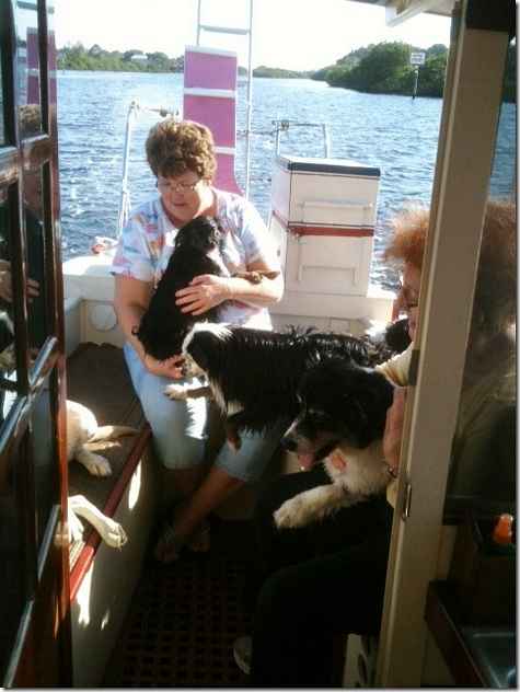 Me and Steve and Helen and Kayak Kathy and Nicole and our seven dogs just came in from a trip down the river. What's wrong with these pictures? Could it be the shorts and tee shirts.