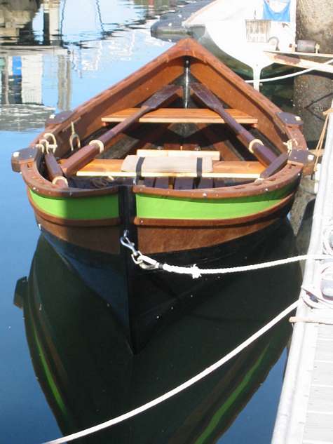 Here a recent launch of mine. Plans were from Larry Westlake for his "Brightsides" his variation on the BC Handliner. I roughly followed his plans and directions, although this one came in a few pounds under his estimate. A bit easier to pick-up top without floorboards and only one of three thwarts. I began building in early August this year and first launch was mid-October when I found a small leak through the port side lower chine. I pulled it out and applied two more coats of graphite epoxy, plugging the leak. Its currently tied up in the Santa Cruz, CA Small Craft Harbor and is not leaking.