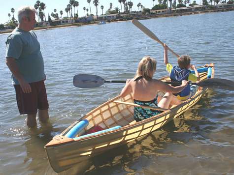 Splash! "Vamos" is a Jim Michalak Piragua that made her first trip to the ocean today.