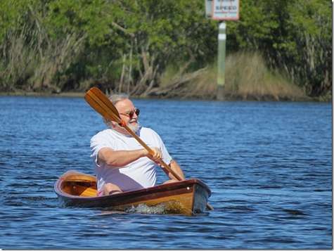 Sandy says that his little canoe is suppose to ride this low in the water; Steve made some comment about a lot of excess weight in the boat but I think it's perfect. This is it's first time in the water since he started it last week. At least it seems like it, Sandy doesn't mess around when it comes to these canoes.