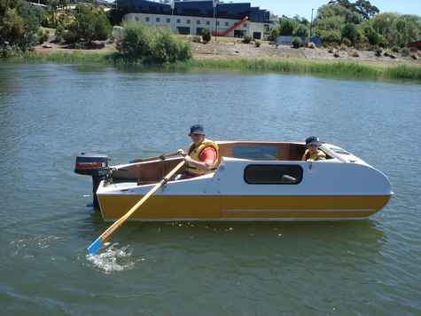I have some exciting news for you, the first build of the Mini Camper Cruiser is complete and water tests are underway. As you may remember, this was an idea submitted by Craig Titmus, of Tasmania Australia, during the design contest I had last year. After a few months of almost constant communication between the two of us, the plans were completed and I included them in my plans catalog. Well, the winter months down under slowed Craig's build process quite a bit, but he persevered, and last week I received photos of the finished project. Needless to say, I am thrilled with the results.