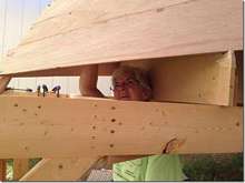 Rex and Kathy can put out some really great boats and then give them away. This one is going to be a Caledonia yawl. I already have the first bid in for the boat, trailer, sails and all of the other stuff they they invariably throw in, $5000. I know that sounds ridiculous but I think that's what they took for the No Man's Land boat and it was worth twice that. They're like the rest of us, we can build um but suck and selling them. As you can see, Kathy does the hard part. Rex is still going with the "I broke my leg and can't get under there" story.