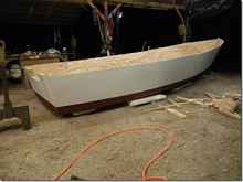 Just when I think I'm doing a good job this guy sends me a picture of his build. Kevin Lott's "Cortez melonseed". I showed you his hatch cover last time. OK Richard and Steve and even Barry, back to the drawing board. You can't let this Georgia red neck show you up with this beauty. He says that he'll be at Cedar Key in May. I hope so cause I'm going to go over this one with a fine tooth comb to see if it's really this beautiful. He even has a black sail for it. I knew Kevin was serious about a melonseed when he showed up here at the shop to see it they were as good as I've always said. He looked at everything, took pictures and ask lots of good questions. They are as good as advertised Kev.