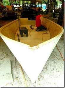 Steve finished the rebuild of Chelsea, this time painting over all of the bright work. Real wood looks great, as seen on this canoe of his until the sun eats it up. He did refinish the mahogany on Chelsea two times but that's the end, it's now wood colored latex paint which lasts forever in the sun.