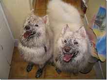Dogs never get dirty or wet or smelly. Just look at Lucky, Richard's best friend and boat companion. And then there's another Richard's two pristine pure white super soft lovable doggies. I wonder what their mom said when she saw this pair. You know they're showing her how proud they are of the adventure they had in the mud. This one is so precious I doubt if she even got mad at them.