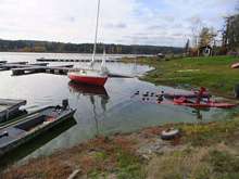 There's this delightful little lake just to the south of us, with a delightful little mom & pop fishing resort on it. Albeit, both mom and pop are the ages of my own kids. Anyhow, they allowed me to bring a succession of boats through their place and get them ready for further adventures back last spring. Actually, some of that "spring" outfitting was done with ice on the dock and snow on the beach. The lake has been there since the last ice age went north. One of those puddles scooped out and then shaped and filled in further over the eons, by a stream. Eloika is pretty shallow, and as the summer progresses, weeds grow all the way to the surface. And, that's when I have to go looking for deeper water. So, the height of summer finds my fleet elsewhere. But spring and fall are quite, as I say, delightful.